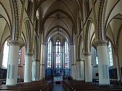 Den Hochaltar und weitere bauzeitliche Ausstattungsstücke schuf Friedrich Wilhelm Mengelberg. Große Teile der originalen Bildfenster sind erhalten.