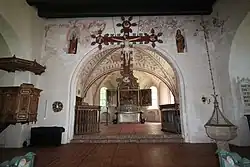 Die Triumphkreuzgruppe aus dem Jahr 1491 wurde von Lütje Möller aus Schleswig geschaffen. Sie hängt zentral unter dem Chorbogen und ist, wie auch der Altartisch und die Gewölbebemalung, mit reicher Ornamentik verziert. Diese Verzierungen sollen auf die Auferstehung und das Paradies hinweisen.[1][2]