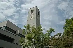 Im Juni 1976 wurde der 24 m hohe Glockenturm aus zehn Fertigteilelementen errichtet, die mit einem Schwerlastkran übereinander kombiniert wurden. Am 4. Juni wurde das letzte Turmfertigteil aufgesetzt.[5]
