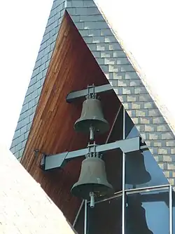 Die Glocken wurden am 3. Juni 1961 in der Glockengiesserei Eschmann, Rickenbach, gegossen und am 29. Oktober vor der Kirche geweiht. Sie hängen in keinem Kirchturm, sondern am First des Giebels des Chorraumes, von der Breitestrasse aus gut sichtbar.[17]