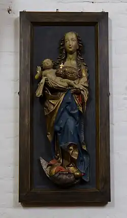 Etwas weiter rechts am südlichen Pfeiler befindet sich eine um 1500, vermutlich vom Rostocker Henning Roleves[2], gefertigte spätgotische Mariendarstellung mit Christuskind. In Schwaan wird sie die Wiendorfer Madonna genannt, da sie 1945 in Wiendorf auf dem Kirchdachboden gefunden wurde.