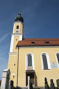 Die Kirche wurde zwischen 1746 und 1756 von dem Hofmaurermeister Johann Georg Hirschstötter und dem ebenfalls aus Landshut stammenden Hofzimmerermeister Wolfgang Halbmayr an der Stelle eines Vorgängerbaus errichtet.