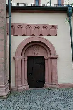 Erhalten sind aus dieser frühen Zeit heute nur Teile der unteren Hälfte der Außenwände. Dazu zählen allerdings auch die bemerkenswerten Portale, die stark an die Steinmetzarbeiten in der Pfalz Gelnhausen erinnern. Besonders bemerkenswert ist das Petrus-Tympanon über dem Nordportal.