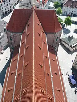 8. Nach Altmann war die Neugestaltung des Turms bereits 1614, nach Biller/Rasp erst 1621 abgeschlossen. Vgl. Altmann, Kath. Stadtpfarrkirche St. Peter, München, S. 6, bzw. Biller und Rasp, München 2003, S. 351.