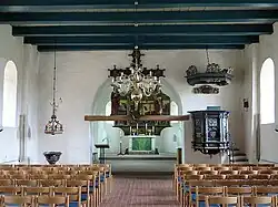 Die Kanzel der Kirche, die 1571 im Renaissancestil gefertigt wurde, zeigt auf den Brüstungsfeldern des sechseckigen Korbes die Namen und Lebensdaten mehrerer Pastoren. An der Wand neben der Kanzel hängt eine Kanzeluhr. Der dazugehörige Schalldeckel wurde 1750 im Barockstil überformt und ist reich verziert.[2][4]