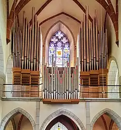 Das jetzige Instrument der Firma Mühleisen (Leonberg) wurde 2014 eingeweiht und ersetzte eine Kemper-Orgel aus dem Jahr 1954. Sie ist wie ihre Vorgängerin an der Westwand der Kirche aufgebaut, ohne das große Westfenster zu verdecken. Das Instrument hat 39 Register (zusätzlich 7 Transmissionen und Extensionen) auf drei Manualen und Pedal.[1]