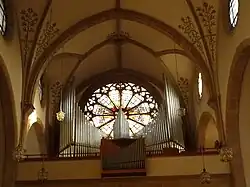 Die (ursprüngliche) Orgel wurde im Jahr 1903 von Gebr. Link (Giengen a. d. Brenz) erbaut. Das pneumatische Werk hatte 26 Register auf zwei Manualen und Pedal. 1963 wurde die Orgel von Orgelbaumeister Hugo Wehr aus Haßloch umgebaut und auf 31 Register auf drei Manualen erweitert, das Orgelgehäuse von Link wurde entfernt und im Stil der Zeit erneuert; 1988 wurden die Pfeifen auf elektrische Schleifladen gestellt. Zuletzt wurde die Orgel in den Jahren 2007–2008 von Orgelbauer Martin Vier (Friesenheim) reorganisiert. Die bis dato pneumatischen Registertrakturen wurden auf elektrische Trakturen umgestellt, das Schwellwerk erhielt eine neue Kegellade und die Disposition und Intonation wurden dem Zustand aus dem Jahre 1903 angenähert. Das Instrument hat 40 Register auf drei Manualen und Pedal. Die Spieltraktur und die Registertraktur sind elektrisch.[1]