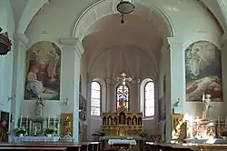 Die Innenräume sind mit Stichkappengewölben überspannt. Die heutige Orgel wurde 1994 von Orgelbau Eisenbarth im Gehäuse der Vorgängerorgel erbaut.[1] Die Kreuzwegstationen schuf Christian Wink 1772.