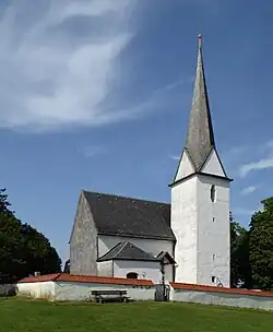 Die Saalkirche besteht aus dem im Kern romanischen Langhaus, einem Vorzeichen im Westen der Südwand des Kirchenschiffs, dem dreiseitig geschlossenen Chor im Osten und dem mit einem spitzen Helm bedeckten Chorflankenturm an dessen Südwand. Der eingezogene Chor und der Turm sind spätgotisch und stammen aus dem 15. Jahrhundert. Um 1720 erfolgte die Barockisierung der Kirche.