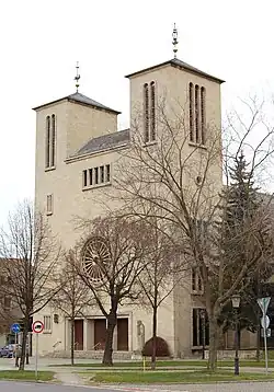 - ↑ Verena Schädler: Katholischer Sakralbau in der SBZ und in der DDR. Verlag Schnell & Steiner, Regensburg 2013, ISBN 978-3-7954-2675-0, S. 154.