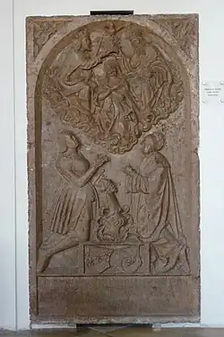 - Auch die Grabplatte des Abtes Thomas Holl, der 1619 starb, ist mit einem Relief verziert.