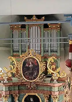 Die Orgel befindet sich oberhalb des Altars hinter einer Empore. Sie wurde im Jahr 1875 von der Orgelwerkstatt Steinmeyer in Oettingen geschaffen. Die damalige mechanische Kegelladentechnik macht sie heute zu einem seltenen Instrument. Sie besitzt elf Register auf einem Manual und Pedal und hat eine „romantische“ Klangfarbe. Eine Restaurierung erfolgte 1988.[8]