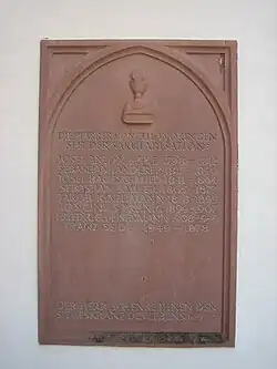 Auf zwei Steintafeln wird den Gefallenen des Deutsch-Französischen Krieges von 1870/71 und den Gefallenen des Ersten Weltkrieges von 1914 bis 1918 gedacht.