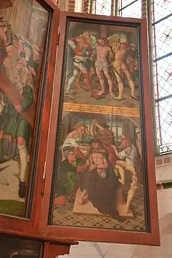 - ↑ Informationstafel in der Kirche, siehe unter Wikimedia Commons.
