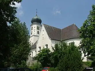 Um 1500 wurde auf dem heutigen Kirchplatz eine erste Kirche erbaut. Das heutige Kirche St. Philippus und St. Jakobus, ist ein Neubau aus den Jahren 1693 bis 1697.[2] Die Kirchweihe erfolgte am 29. August 1697 durch den Konstanzer Weihbischof Konrad Ferdinand Gaist von Wildegg. Die Kirche wurde den Aposteln Philippus und Jakobus sowie der heiligen Margareta geweiht.[3]