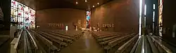 In der Seitenkapelle befindet sich der Altar vor dem Fresko des Kosmischen Christus von Franz Nagel an der Stirnwand, die Glasfenster gestaltete Johannes Schreiter.