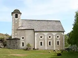 An der angeblichen Stelle des Martyriums des heiligen Placidus von Disentis um 720 wurde im 9. Jahrhundert (804?) eine Kapelle errichtet, die im Januar 1458 durch eine Lawine zerstört wurde. Sie wurde im bisherigen Umfang wieder aufgebaut. Bei Grabungen wurden 1923 eine karolingische Saalkirche mit halbrunder Apsis nachgewiesen. Mit dem barocken Neubau wurde 1655 begonnen; die alte Kapelle wurde abgerissen. Geweiht wurde die Kirche am 3. September 1658. Architekt war Domenico Barbieri aus Roveredo im Misox. 1990 bis 1993 wurde die Kirche restauriert.