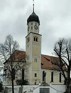 Mit der Säkularisation im Jahr 1803 endete die Patronatsherrschaft des Stiftes St. Stephan.[3] Bei der Neugestaltung des Kirchhofs im Jahr 1818 wurden Reste eines römischen Grabmals von Marcus Buccinius Tacitus gefunden.[4] 1828 übernahm die Kirche einen Altar aus der Johann-Nepomuk-Kapelle im Augsburger Dom. Das Antependium von Johann Georg Bergmüller zeigt Darstellungen des heiligen Johannes von Nepomuk.[5]