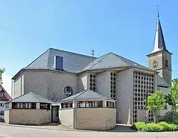 Vor der Kirche steht ein Kriegerdenkmal, das wie das Kirchengebäude in der saarländischen Denkmalliste als Einzeldenkmal aufgelistet ist.[1]