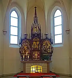 - Marienaltar (nördlicher Seitenaltar) mit Mondsichelmadonna (18. Jahrhundert), Altarflügel (19. Jahrhundert)