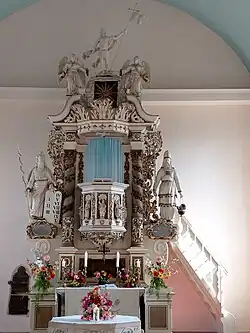 Die Deckenkonstruktion der Kirche besteht aus einem Holztonnengewölbe, das durch ein mit roten Dachziegeln gedecktes Satteldach abgeschlossen wird.