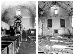 - ↑ 1874 erhielt sie zwischenzeitlich einen Anstrich mit Eichenfarbe, nach Aussagen jener, die die Kirche noch vor ihrer Schließung in den 1970er Jahren kannten, soll sie aber zuletzt wieder weiß gewesen sein.
