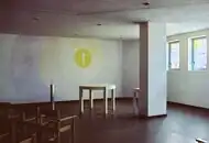 Im Rahmen der Sanierung in den Jahren 1978–1979 entwarf der Künstler Max Rüedi eine neue Gestaltung der Werktagskapelle, die den Vorgaben der Liturgiekonstitution des Zweiten Vatikanischen Konzils folgte. Die geradlinig angeordneten Kirchenbänke wurden durch halbkreisförmig angeordnete Stuhlreihen ersetzt, sodass dem Communio-Gedanken des Vatikanums Ausdruck gegeben wurde. Ein Holztisch bildete das Zentrum der Kapelle und verwies auf die Bedeutung des Abendmahls als Mitte der versammelten Gemeinde. Die Wand hinter dem Altar wurde von Max Rüedi in Blau- und Gelbtönen gestaltet; ein Kreuz in gelbem Kreis bildete die Mitte des Wandgemäldes.