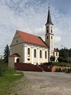 Die neue Barockkirche wurde im Jahr 1735 in nur sechs Monaten von Simpert Kraemer[3] erbaut, obwohl von dem alten Kirchenbau vermutlich nur Teile des Kirchturmes wieder verwendet wurden[4]. Geweiht wurde diese neue Kirche aber erst elf Jahre später.