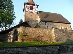 Die gotische Saalkirche wurde aus Bruchsteinen erbaut. Sie besteht aus einem Langhaus und einem frühgotischen Chorturm im Osten, der von einer vor 1300 errichteten Wehrkirche stammt. Ihm wurde ein Geschoss aus Holzfachwerk für den Glockenstuhl mit drei Kirchenglocken aufgesetzt, das einen achtseitigen, spitzen Helm trägt.