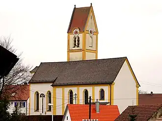 Die Saalkirche wurde 1715 nach Plänen von Dominik Gläsl unter Einbeziehung von Teilen des gotischen Vorgängerbaus errichtet und 1863 umgestaltet. Sie besteht aus dem Langhaus mit vier Jochen, dem eingezogenen, dreiseitig geschlossenen Chor im Osten, dem Chorflankenturm und der Sakristei an der Südwand des Chors. Das oberste Geschoss des Chorflankenturms enthält den Glockenstuhl mit drei Kirchenglocken.