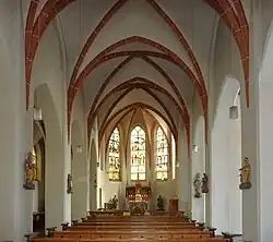 Im Innenraum des alten Kirchenteils befindet sich ein neugotischer Hochaltar, sowie einige bemalte Heiligenfiguren, die zum Teil aus der Zeit des Rokoko stammen. Die Fenster sind Werke der Düsseldorfer Glasmalereiwerkstatt Gassen und Blaschke und wurden um das Jahr 1895 eingesetzt. Im Neubau befinden sich ebenfalls einige historische Heiligenfiguren, sowie ein hölzerner Kreuzweg, der aus dem alten Kirchenteil übernommen wurde. Die Orgel ist ein Werk der Werler Orgelbaufirma Gebr. Stockmann von 1988 und besitzt 24 Register auf zwei Manuale und Pedal verteilt.[6][7] An der gegenüberliegenden Seite, der Westwand des Neubaus, steht ein Orgelpositiv der niederländischen Orgelbauwerkstatt Verschueüren aus dem Jahr 1967.