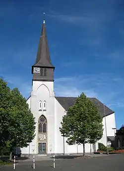 Ab 1844 plante die politische Gemeinde einen Neubau der Kapelle, es wurde wieder ein Schulbau mit angrenzender Kapelle gewünscht. Das ließ sich allerdings nicht realisieren und die alten Gebäude verfielen mehr und mehr. Da eine Reparatur nicht in Frage kam, wurde 1888 ein Leo-Verein gegründet, um Geld für den Neubau zu sammeln. Da keine Einigkeit über einen Bauplatz erzielt werden konnte,[4] verzögerte sich der Baubeginn bis 1894. Bis Dezember wurden alle notwendigen Genehmigungen erteilt.[5] Der erste Spatenstich erfolgte im April 1895, am 11. Juni 1895 wurde der Grundstein gelegt. Bis zum Jahresende war der Rohbau fertig und mit einem festen Dach versehen. Nach einer Baupause bis zum Frühling 1896 konnten alle Wände verputzt und der Turmbau vollendet werden. Die Konsekration nahm Bischof Wilhelm Schneider aus Paderborn am 8. Juli 1904 vor.[6]