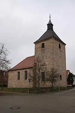 Das Mauerwerk von St. Vitus besteht aus Sandsteinquadern. Die unteren Geschosse des Chorturms der Saalkirche sind mittelalterlich. Sein Pyramidendach ist mit einer Laterne bekrönt. Das mit einem Satteldach bedeckte Langhaus aus Quadermauerwerk wurde Mitte des 18. Jahrhunderts an den Chorturm angefügt. Das oberste Geschoss des Turms beherbergt hinter den Klangarkaden den Glockenstuhl, in dem zwei Kirchenglocken hängen, die 1964 Friedrich Wilhelm Schilling gegossen hat.[1]