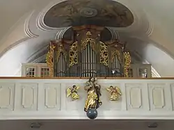 Die Orgel wurde von der Firma Mattes aus Metten hinter dem historischen Prospekt aus dem Jahr 1724 (andere Quellen: um 1750)[3] des Orgelbauers Johann Konrad Brandenstein errichtet und am 4. Juni 2000 durch den damaligen Weihbischof von Regensburg Wilhelm Schraml eingeweiht. Sie umfasst 26 Register auf zwei Manualen und Pedal. Die Spieltraktur ist mechanisch, die Registertraktur ist mechanisch und kann auch elektrisch angesteuert werden. Das Instrument hat folgende Disposition:[4]
