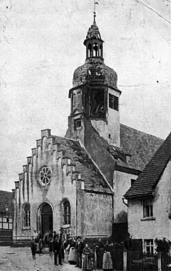 Das Baujahr der ursprünglichen Dorfkirche ist nicht bekannt, erste Urkunden über eine Reparatur, bei der der Kirchturm errichtet wurde, stammen aus den Jahren 1619 bis 1620. 1664 kam die Turmuhr hinzu. 1719 schrieb man von einer Turmerneuerung.