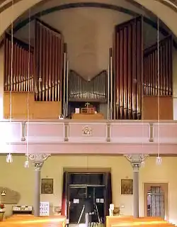 - Spielhilfen: 3 freie Kombinationen, Tutti, Pleno, Generalkoppel, Crescendowalze, Einzelabsteller für Zungen und Sesquealter III (SW)