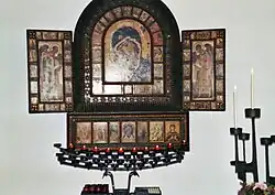 Im Seitenschiff, das durch weitere entsprechende Bilder insgesamt ein orthodoxes Gepräge hat, hängt an der Stirnwand eine Kopie der Ikone der Muttergottes von Vladimir, eines der ältesten Marienbilder Russlands. Sie ist umrahmt von einer Vielzahl weiterer kleiner Ikonenbilder und von zahlreichen Edelsteinen und weist zusätzlich zwei schmale Seitenflügel mit Engelikonen auf. Dieser Marienaltar wurde 1971 von Elisabeth Drost gestaltet. Vor ihm stehen verschiedene Kerzenständer; darunter ein runder, den Erdball darstellender, der von einem mittlerweile verstorbenen, geschätzten Mitglied der Gemeinde geschaffen wurde.