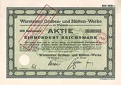 - ↑ Geschichte der Warsteiner Gruben- und Hüttenwerke Aktiengesellschaft. Typoskript, 1938, S. 54.
