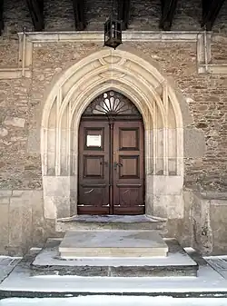 Die Kirche ist als Bruchsteinbau mit Sandsteingliederungen ausgeführt, Strebepfeiler sind an Schiff und Chor angebracht. Spitzbogige Portale mit verschränktem Stabwerk an der Nord- und Westseite erschließen das Bauwerk. Breite, dreibahnige, gerade noch spitzbogige Maßwerkfenster erhellen das Innere. In der Nordostecke ist der viergeschossige Turm mit Welscher Haube und rechteckigen Fenstern angeordnet, die in den beiden Untergeschossen mit Stabwerklaibungen versehen sind. Die Sakristei liegt im Erdgeschoss des Turms.
