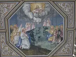 Hauptstück der Ausstattung ist ein zweigeschossiger, bemalter, hölzerner Altar mit Reliefs, die auf 1613 datiert sind. Im Hauptfeld findet sich eine Darstellung des Abendmahls, darunter Christus am Ölberg, darüber Kreuzigung und ein triumphierender Christus. Seitlich der Säulen sind vollplastische Evangelistenfiguren aufgestellt.