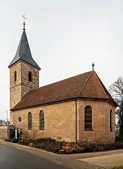 Die spätgotische Saalkirche aus Quadermauerwerk ließen 1468 die Patrizier Haller von Hallerstein bauen. Ihr Langhaus hat einen dreiseitig geschlossenen Chor im Osten, der mit den Wänden des Langhauses fluchtet und einen Fassadenturm im Westen, der 1865 mit einem achtseitigen, schiefergedeckten Knickhelm bedeckt wurde. Die Flachdecke des Langhauses hat Christian Leinberger 1728/29 mit Stuck verziert. Die Kirchenausstattung entstand in den 1730er Jahren. Die Orgel mit 12 Registern, 2 Manualen und einem Pedal wurde 1979 von der Orgelbau Eisenbarth errichtet.[1] Nach dem Zweiten Weltkrieg wurde die alte Kirche zu klein und durch einen Neubau ergänzt. So entstand ein Bauensemble aus alter und neuer Kirche.