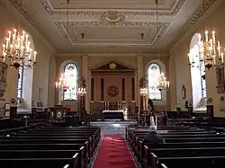 1795 zerstörte ein Feuer große Teile der Kirche, aber die Kanzel – eine Arbeit von Grinling Gibbons – konnte zusammen mit Kirchenakten gerettet werden.