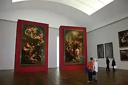 Das Zentrum der ständigen Ausstellung bilden zwei Seitenaltarbilder von Peter Paul Rubens im großen Saal. Diese wurden mit dem dazugehörigen Mittelteil im Auftrage von Wolfgang Wilhelm von Pfalz-Neuburg 1619 für die Neuburger Hofkirche geschaffen und zeigen die Anbetung der Hirten und die Ausgießung des heiligen Geistes. Das Mittelteil, Das Große Jüngste Gericht, befindet sich in der Alten Pinakothek in München. Neben den beiden Seitenaltarbildern sind noch acht weitere Gemälde von Rubens und seiner Werkstatt zu sehen.