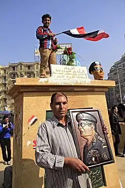 • Frühjahr 2011: Seit dem Frühjahr verlagert sich der Zorn der Bevölkerung zunehmend auf den Militärrat, dem vorgeworfen wird, die Meinungsfreiheit zu missachten, 12.000 Zivilisten von Militärgerichten abgeurteilt zu haben, die Macht des Militärs in der Verfassung verankern zu wollen und die Sicherheitskräfte brutal gegen dagegen protestierende Demonstranten vorgehen zu lassen.[43][47]