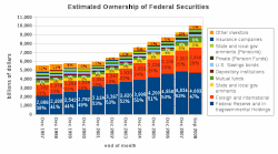 Die Anleihen des Bundes werden von einer Vielzahl von Personen und Institutionen weltweit gehalten. Nach Schätzungen des Finanzministeriums wurden im September 2008 47 % der Anleihen von bundeseigenen Institutionen, allen voran der Federal Reserve Bank, 28 % von ausländischen Investoren und anderen Staaten, 5 % von Bundesstaaten und deren Untergliederungen, 6 % von Investment-Fonds, und 4 % von Rentenfonds gehalten.[28][29]
