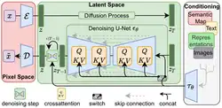 Stable Diffusion verwendet ein latentes Diffusionsmodell als Variante eines tiefen generativen neuronalen Netzes, das von der CompVis-Gruppe an der LMU München[2] in Zusammenarbeit von Stability AI, CompVis LMU und Runway mit Unterstützung von EleutherAI und LAION entwickelt wurde.[3][4]