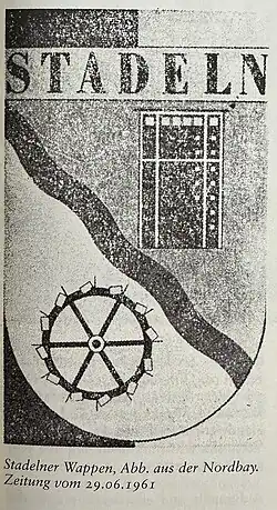 Stadeln ist eine von zwei ehemaligen Fürther Gemeinden mit einem eigenen Wappen. Das ursprüngliche Wappen der Gemeinde Stadeln wurde vom Stadelner Grafiker Paul Linhard entworfen und wurde 1961 vom Stadelner Gemeinderat zum offiziellen Wappen der Gemeinde gewählt. Es zierte in der unteren linken Hälfte ein Schöpfrad und in der oberen rechten Hälfte ein Wasserturm. Getrennt wurden die beiden Elemente von einer welligen Trennlinie, welche die Regnitz symbolisiert.