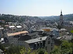 Titularstadt nennt man eine Gebietskörperschaft, die formell den Titel Stadt trägt und in der Regel eine eigenständige Gemeinde ist, der jedoch mehrere Elemente einer Stadt fehlen. Titularstadt wird gelegentlich – in Nichtübereinstimmung mit der historischen Bedeutung – ein Ort genannt, der im Zuge einer kommunalen Neugliederung das Stadtrecht verloren hat, z. B. im deutschen Bundesland Sachsen-Anhalt.[8] In Einzelfällen wird der Zusatz aus historischen Gründen oder zur Differenzierung von anderen Orten als Teil des Namens geführt.