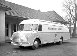 ![]() Eingang Stadtbücherei Gladbeck mit Bücherbus