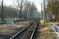 ![]() Stadtbahn-Haltestelle Haus Meer, Blickrichtung Düsseldorf | |